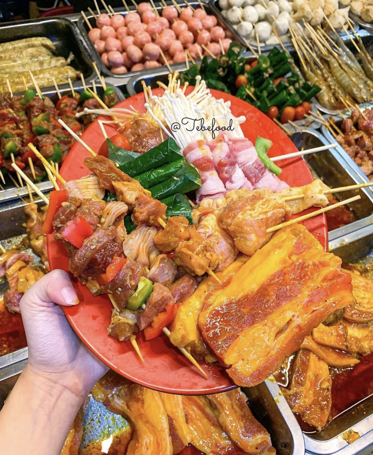 | Lò Đất BBQ hút thực khách với thực đơn món nướng phong phú. Bò nấm kim châm, vú heo, dồi vịt, cá thu nướng... là những hương vị bạn không thể bỏ qua. Tiệm còn có hải sản nướng hay các loại viên chiên, tàu hủ phô mai. Nước chấm ăn kèm gồm sốt BBQ và muối ớt xanh. Ảnh: Tebefood. |