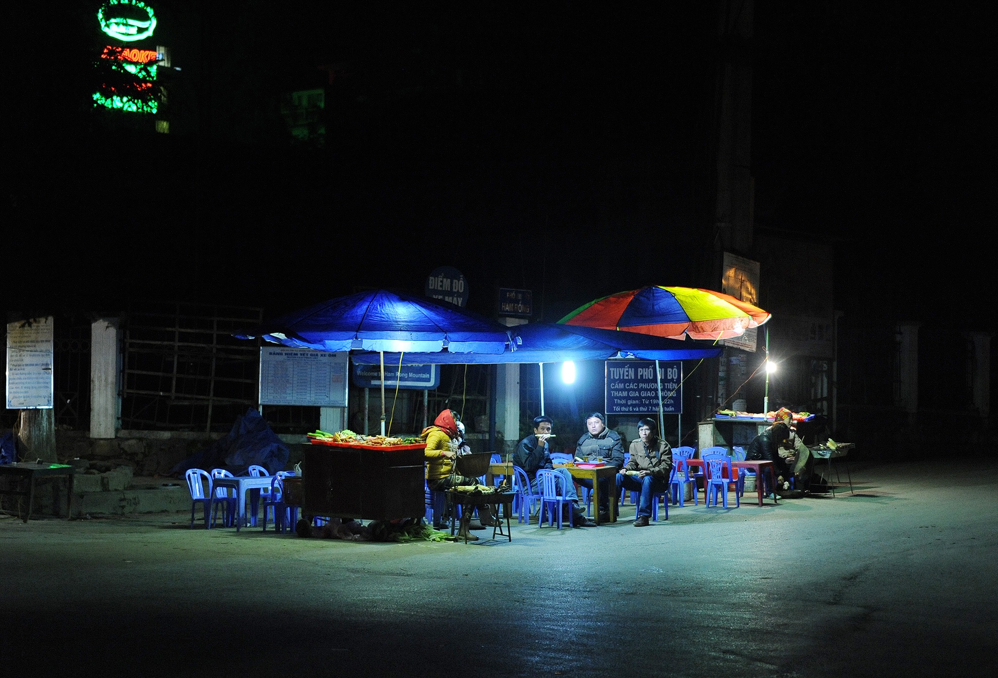 Những người bán đồ ăn đêm, chủ yếu là đồ nướng tại chợ Sapa, khách sạn Công Đoàn, khu vực Nhà thờ, phải quàng kín khăn vì rét đậm.
