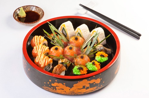 | Sushi ngũ vị với nguyên liệu tươi ngon được trang trí cầu kì, bắt mắt. |