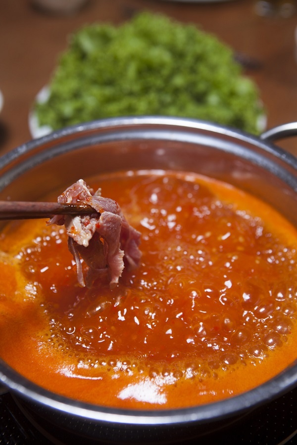 Nước lẩu được chế biến từ nước hầm xương ngọt lịm cùng vị cay đặc trưng của ớt. Thịt bắp bò ngon tuyệt nhúng với nước cay, ăn kèm với cải thảo, xà lách tươi non mơn mơn tạo nên một hương vị ngon khó cưỡng. Nếu là một người không ngại ăn cay, đây sẽ là một món tuyệt vời. Đặc biệt, nước lẩu này rất cay khi ăn với mì.