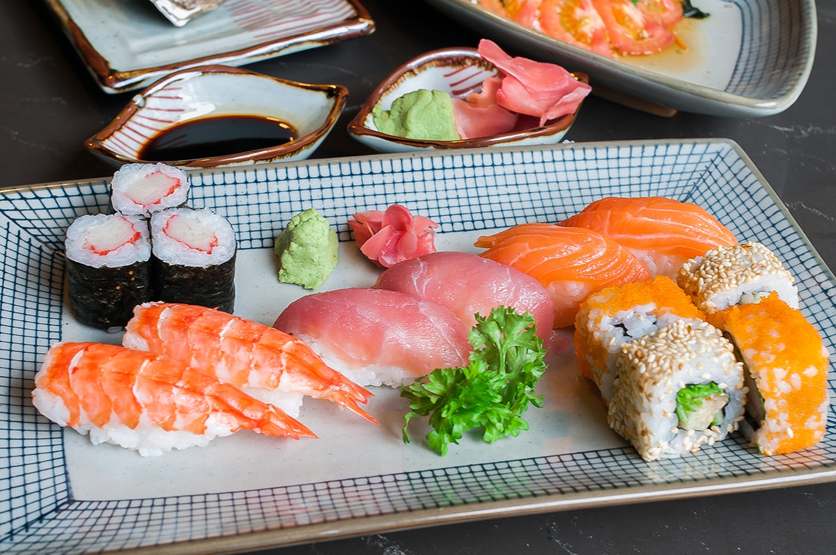 Nhắc tới ẩm thực Nhật, phải kể tới các loại sushi đầy màu sắc, nổi bật là nigiri tôm, nigiri cá hồi, nigiri cá ngừ, bạch tuộc… cùng các loại maki như maki thanh cua, maki lươn Nhật hay maki Califonia… |