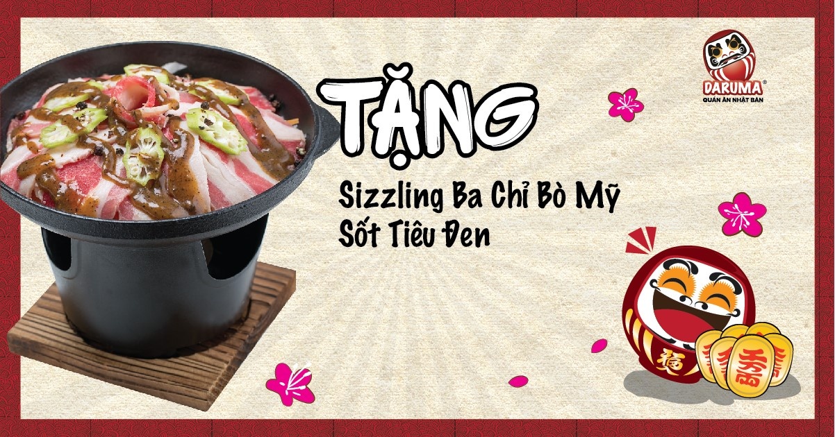 Nhân dịp khai trương nhà hàng mới tại Phan Xích Long, Daruma dành tặng một phần sizzling cho nhóm từ 4 khách dùng bữa tại nhà hàng. Ba chỉ bò Mỹ sốt tiêu đen nóng hổi với vị ngọt mềm của bò Mỹ nhập khẩu hòa quyện với vị the nồng của tiêu đen làm nên bản hòa tấu hương vị Nhật. Đăng ký ưu đãi tại đây. |