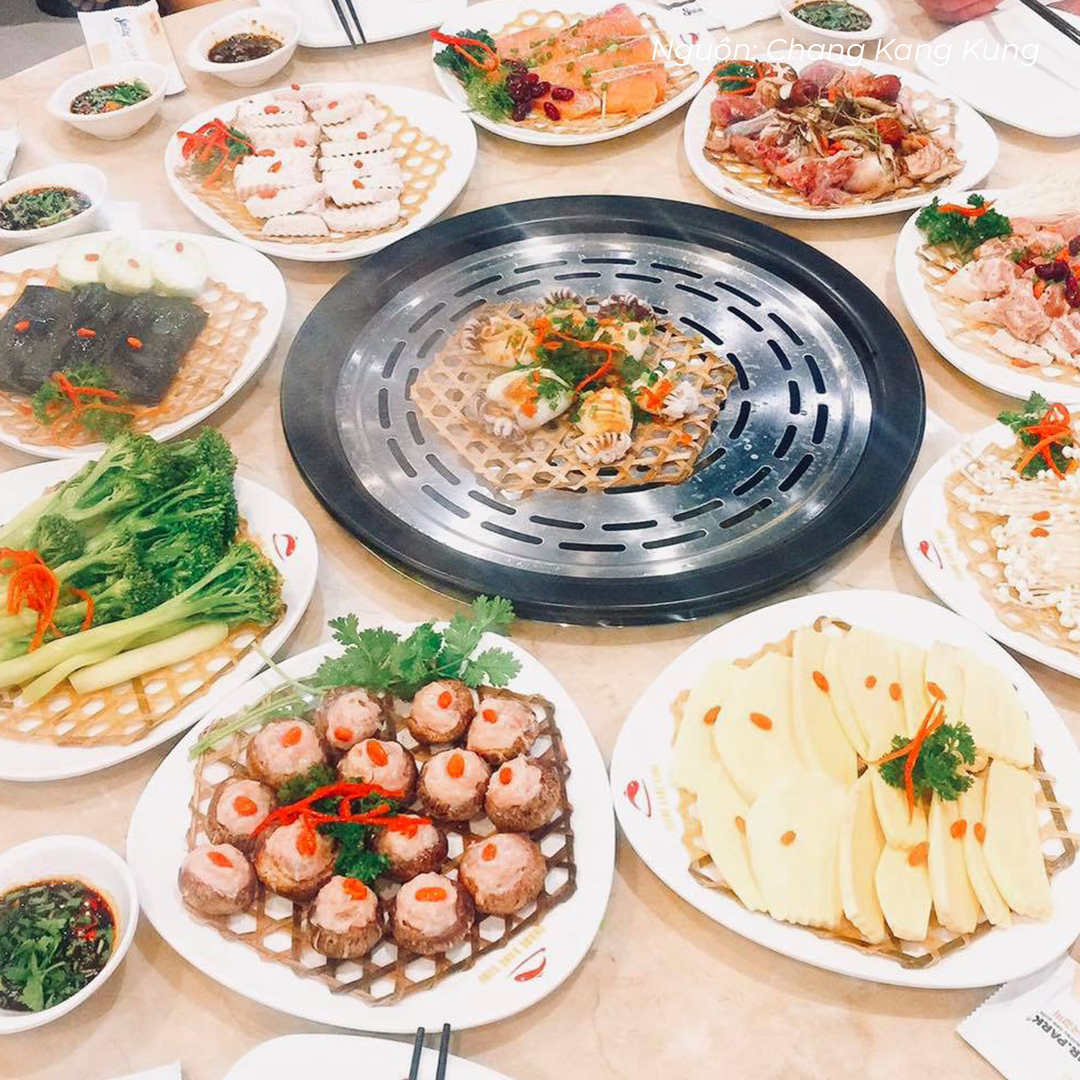 Nhà hàng chủ yếu phục vụ theo dạng combo từ 6 món với đa dạng các loại như hải sản, rau củ, há cảo... Nhân viên sẽ hỗ trợ thực khách hấp từng phần theo đúng thời gian quy định. Với kết cấu của chiếc nồi hấp, phía dưới là gạo trắng sẽ được nấu thành cháo trong thời gian bạn thưởng thức các món ăn.