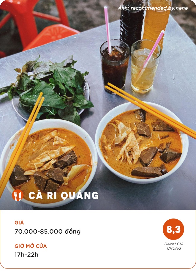 Ngochan Lenguyen: “Mình thích vị nước cốt dừa béo ngậy, thơm phức của quán. Cà ri dê giá cao nhất nhưng lạ và ngon, có mùi dê đặc trưng nhưng không hôi, hầm mềm phần da ăn rất thích. Vịt có đủ các bộ phận như lòng, đầu, ức, cổ... vị bình thường. Cà ri ăn với bún hoặc bánh mì đều ngon”.