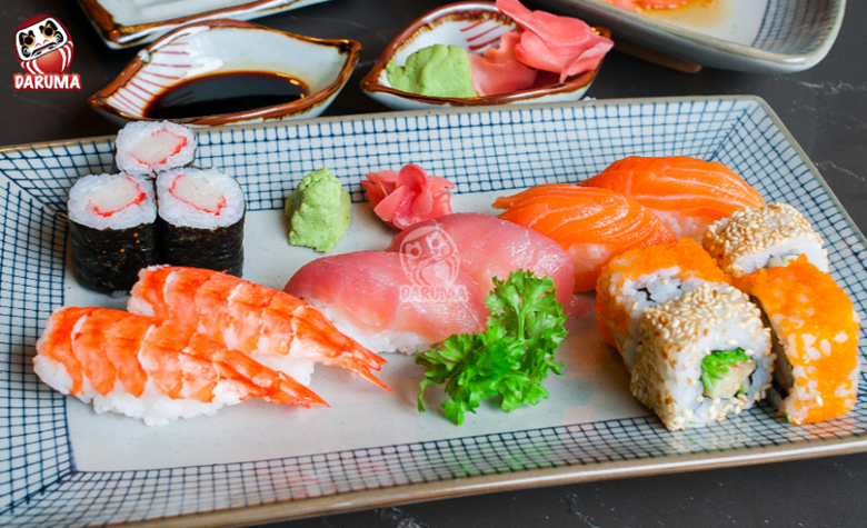 Các loại sushi đa dạng được sắp xếp đẹp mắt là một trong những nét văn hóa của ẩm thực Nhật. |