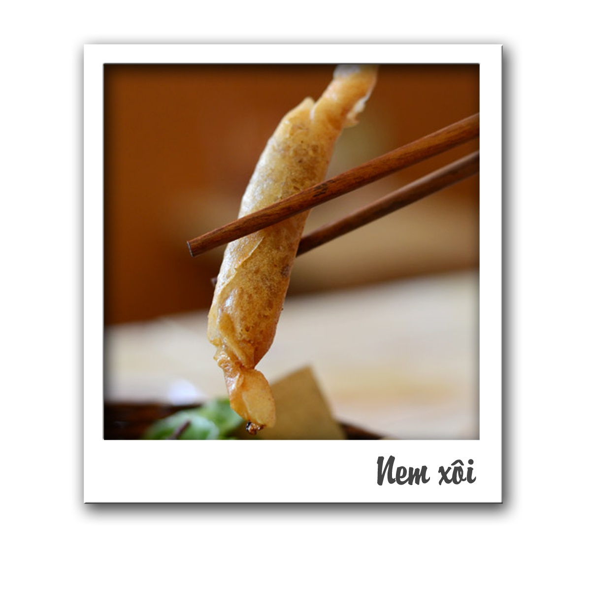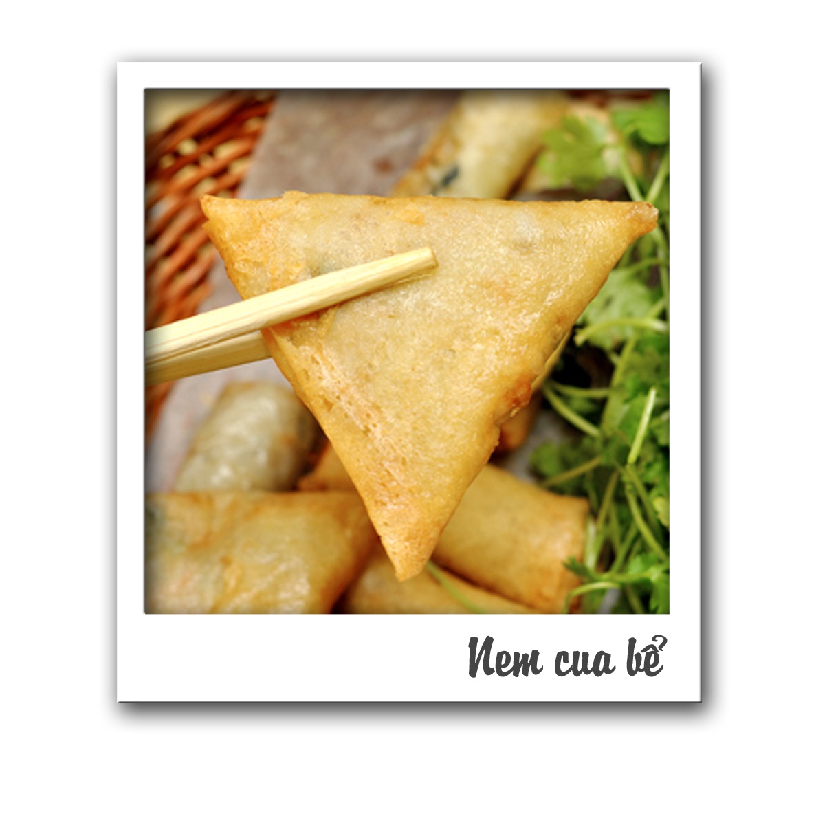 Do chỉ khác nhau nhân gói bên trong nên chủ quán đã nghĩ ra các cách gói nem khác nhau, vừa để phân biệt, vừa hấp dẫn được nhiều bạn nhỏ. Nem que thuôn dài, nem xôi hình chiếc kẹo, nem cua bể hình tam giác, nem gà hình bông hoa... ăn cùng bún và nước chấm chua ngọt rất vừa miệng.