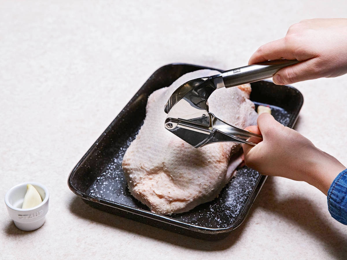 - Chà xát muối và tỏi lên khắp mình vịt.