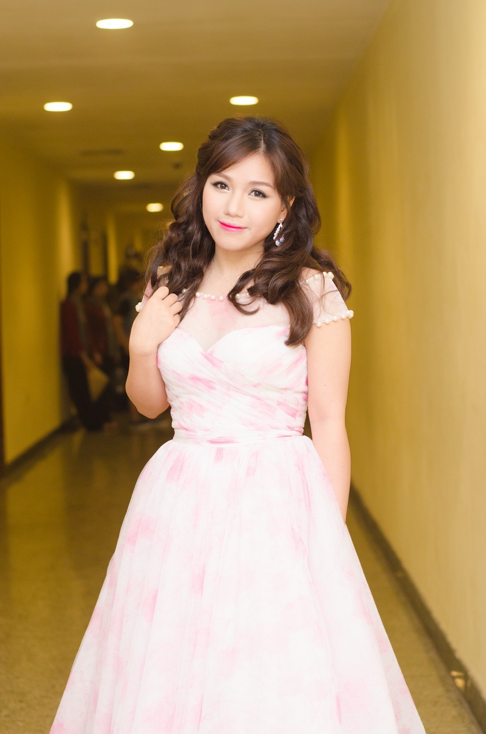 | Tối 25/4, Thùy Chi khiến nhiều người bất ngờ khi xuất hiện với ngoại hình ngày càng xinh đẹp. Cô diện váy hồng điệu đà, trang điểm nhẹ nhàng và để kiểu tóc xoăn bồng bềnh như công chúa. |