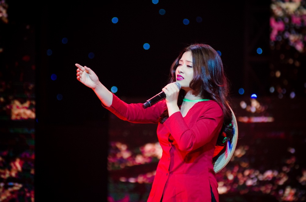 Nữ ca sĩ sinh năm 1990 nhận được nhiều lời khen với ngoại hình xinh đẹp khi tham gia chương trình Quà tặng thời gian tại Hà Nội.