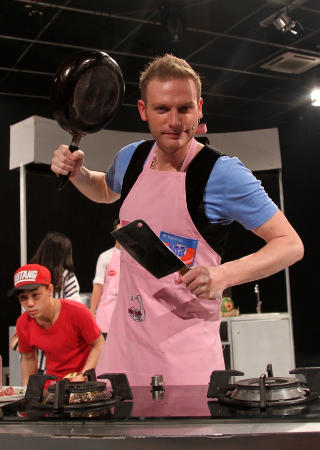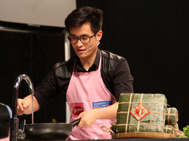 Ca sĩ Hà Anh Tuấn đang trổ tài. Anh rất biết lấy lòng BGK khi nấu thịt kho trứng, một món ăn quen thuộc, truyền thống trong mâm cơm của người VIệt.