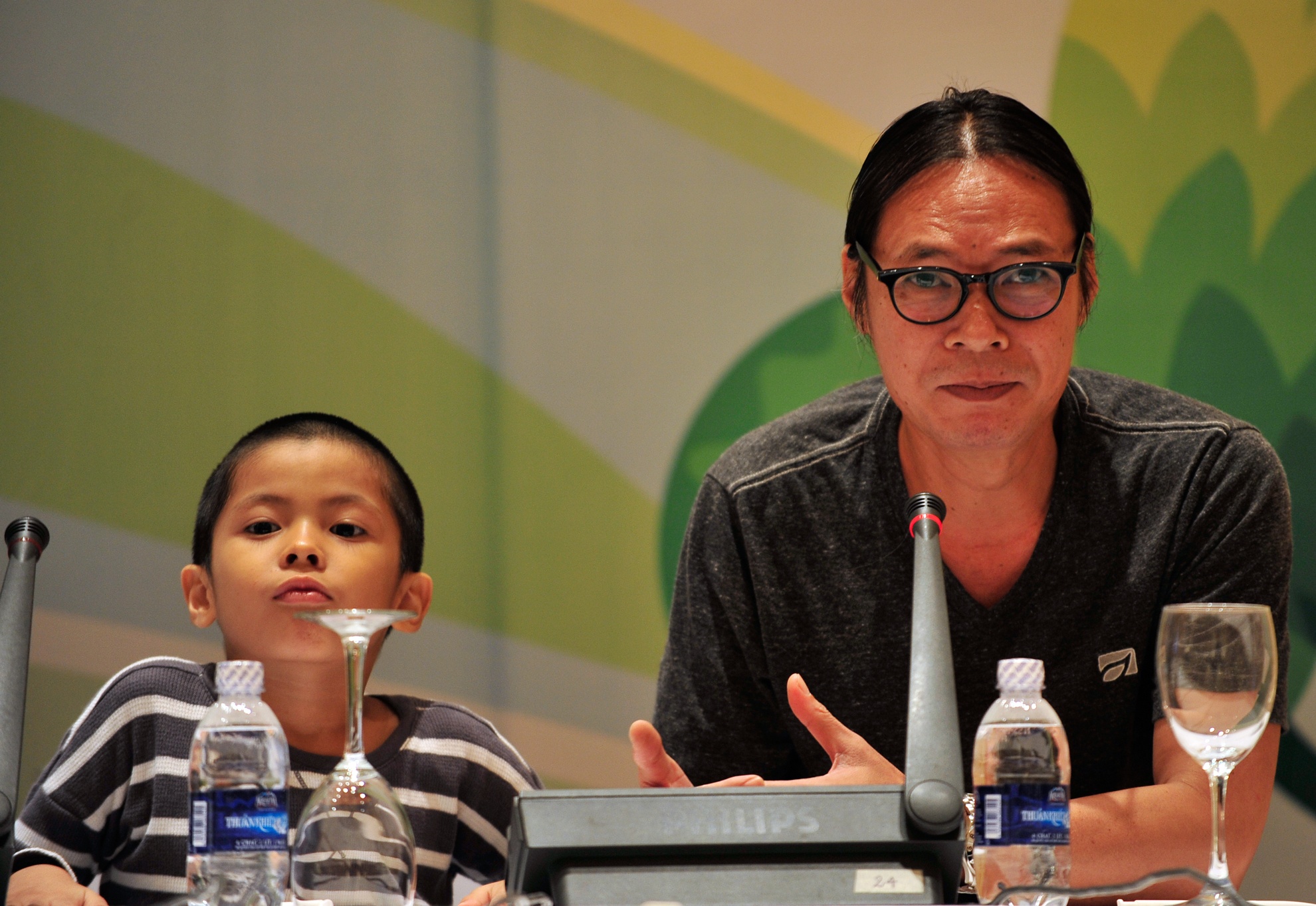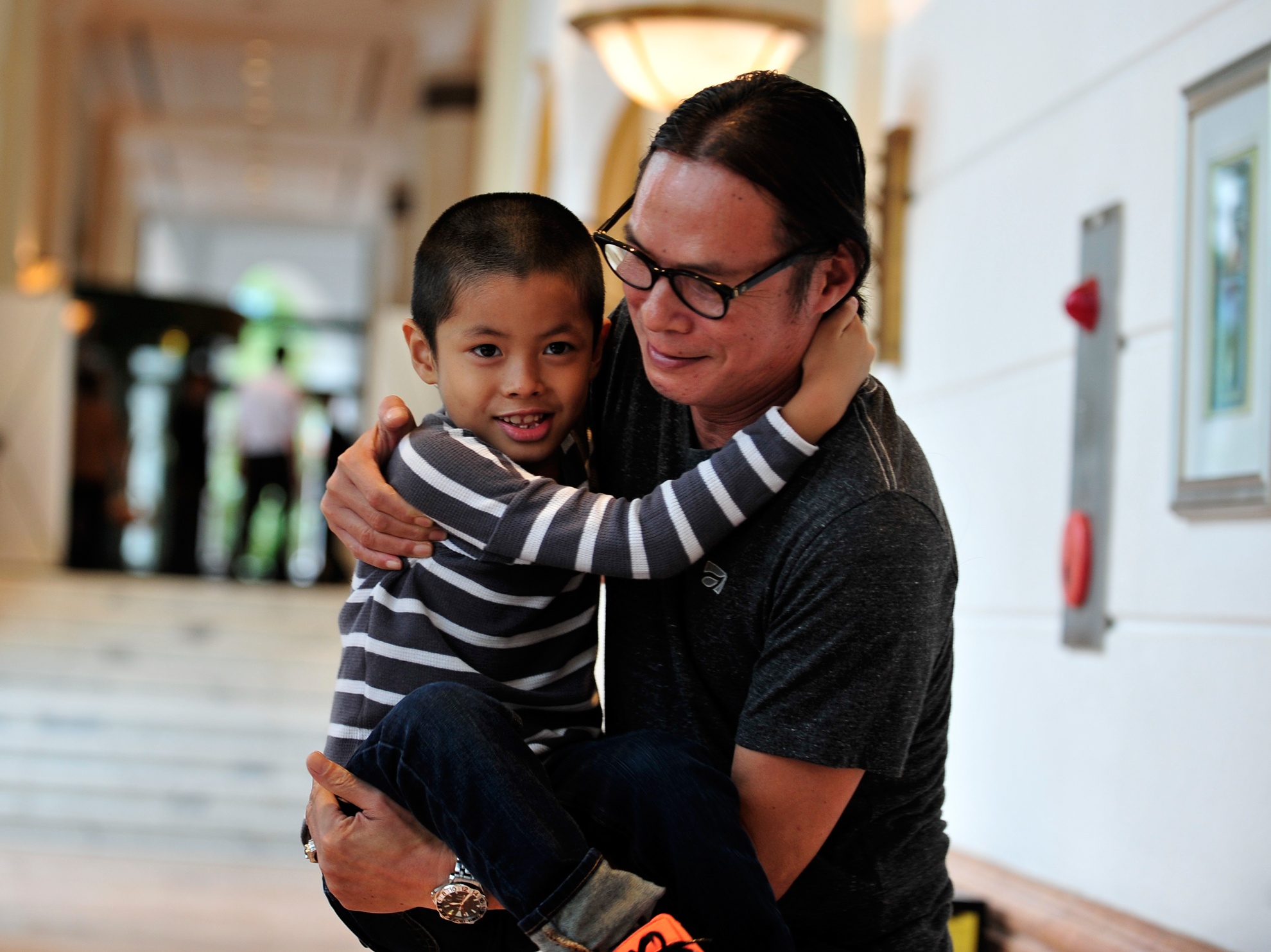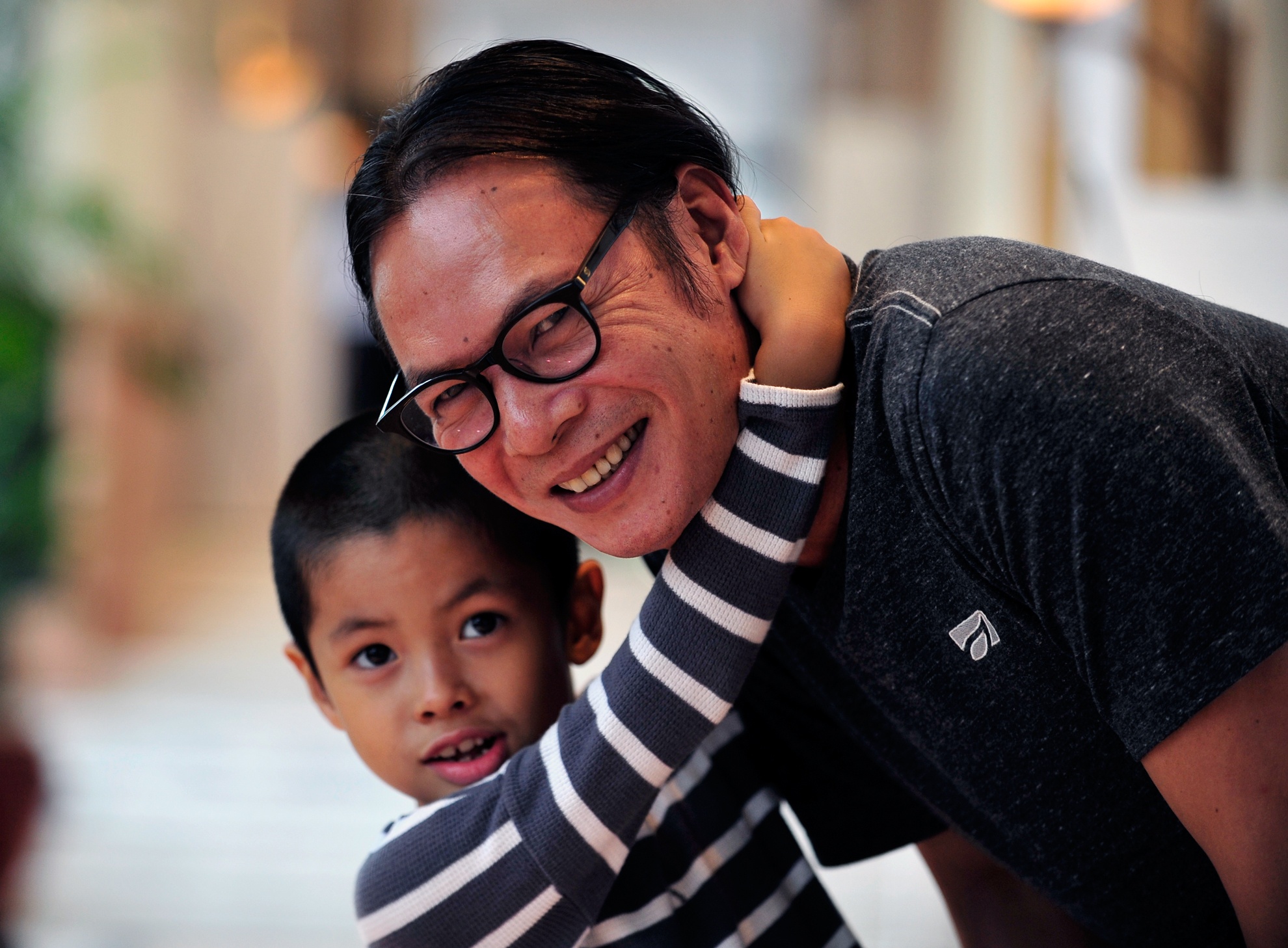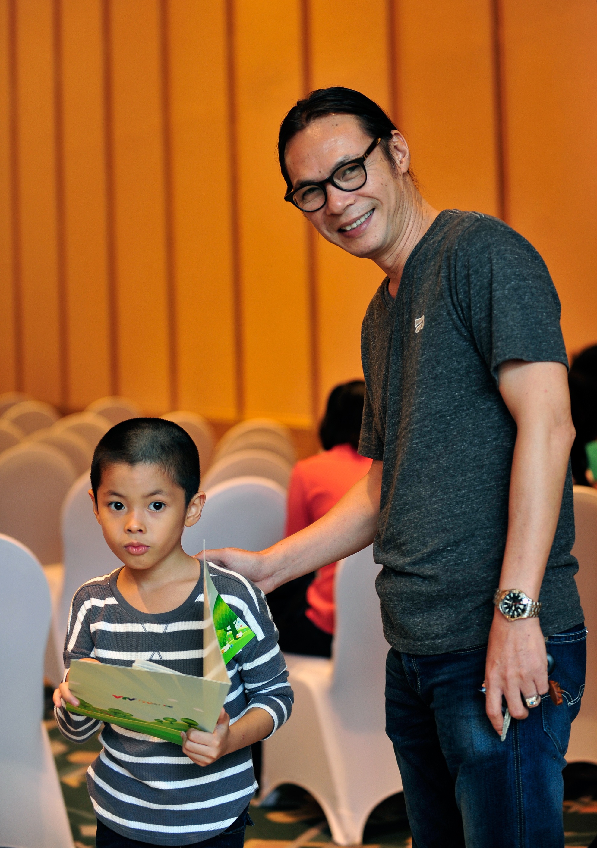| Trong suốt buổi họp báo, cậu nhóc Trần Tú, tên ở nhà là Bờm, luôn quấn quýt bên bố. Hai bố con rất tình cảm khi thường xuyên ôm vai bá cổ và tỉ tê trò chuyện. |