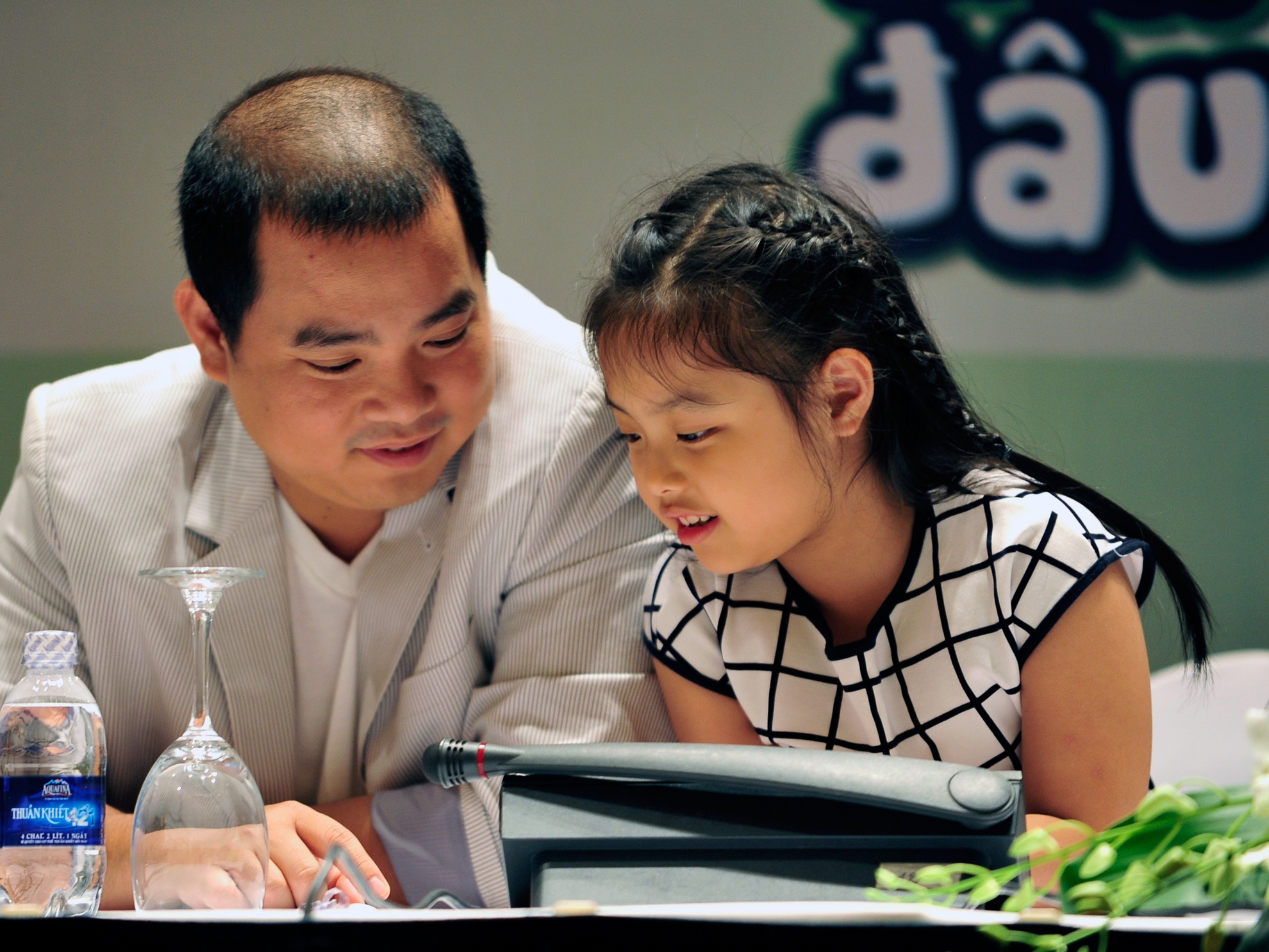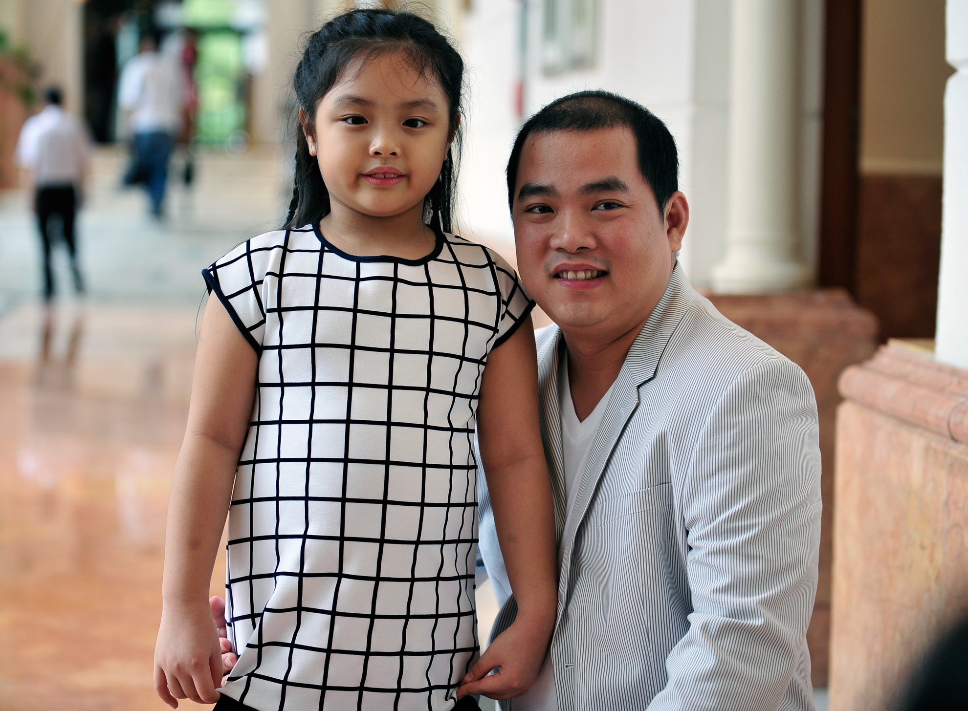 | Cặp bố con thứ ba - Phan Anh và bé Bảo Anh - thu hút mọi ống kính của ký giả ngay khi tới buổi họp báo. Con gái của chàng MC điển trai được mọi người khen rất ra dáng, xinh đẹp và nữ tính. |