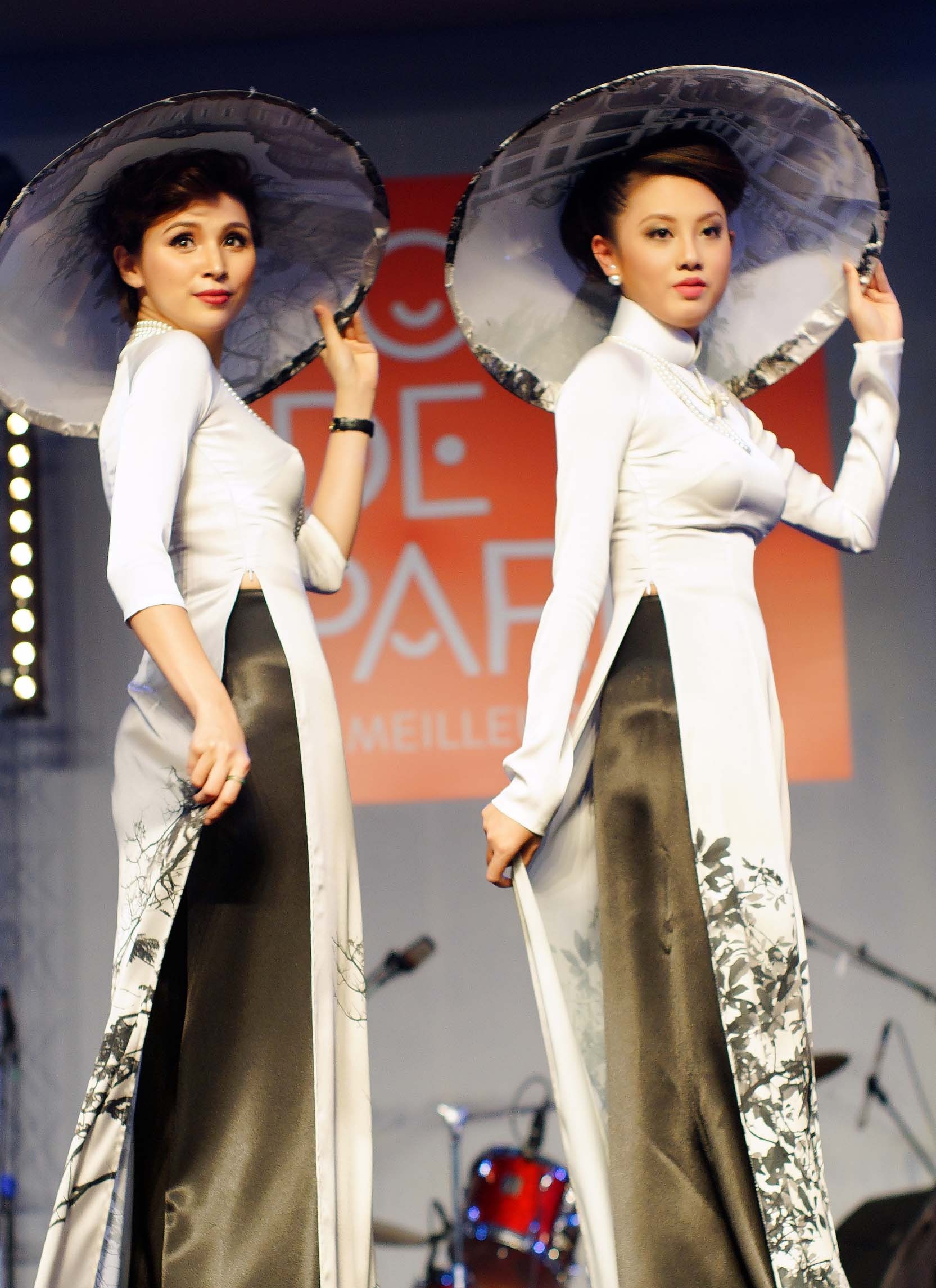 Người mẫu Thúy Ngân, Phan Thu Quyên từ Việt Nam sang, kết hợp cùng dàn mẫu tại Pháp thể hiện bộ sưu tập mang đậm dấu ấn Việt.