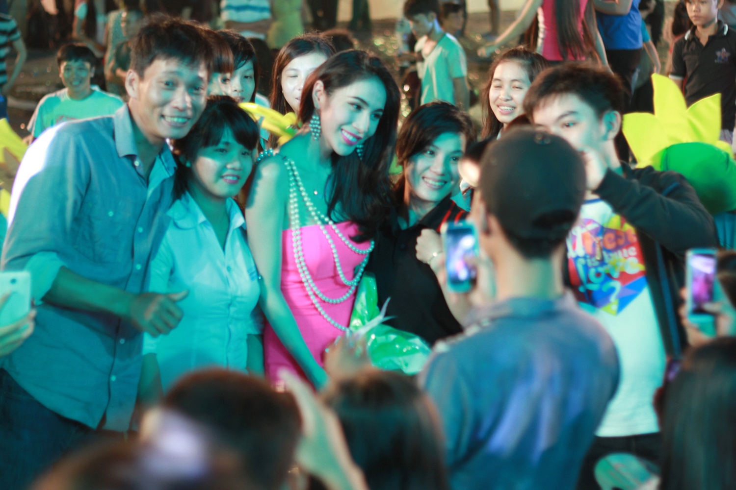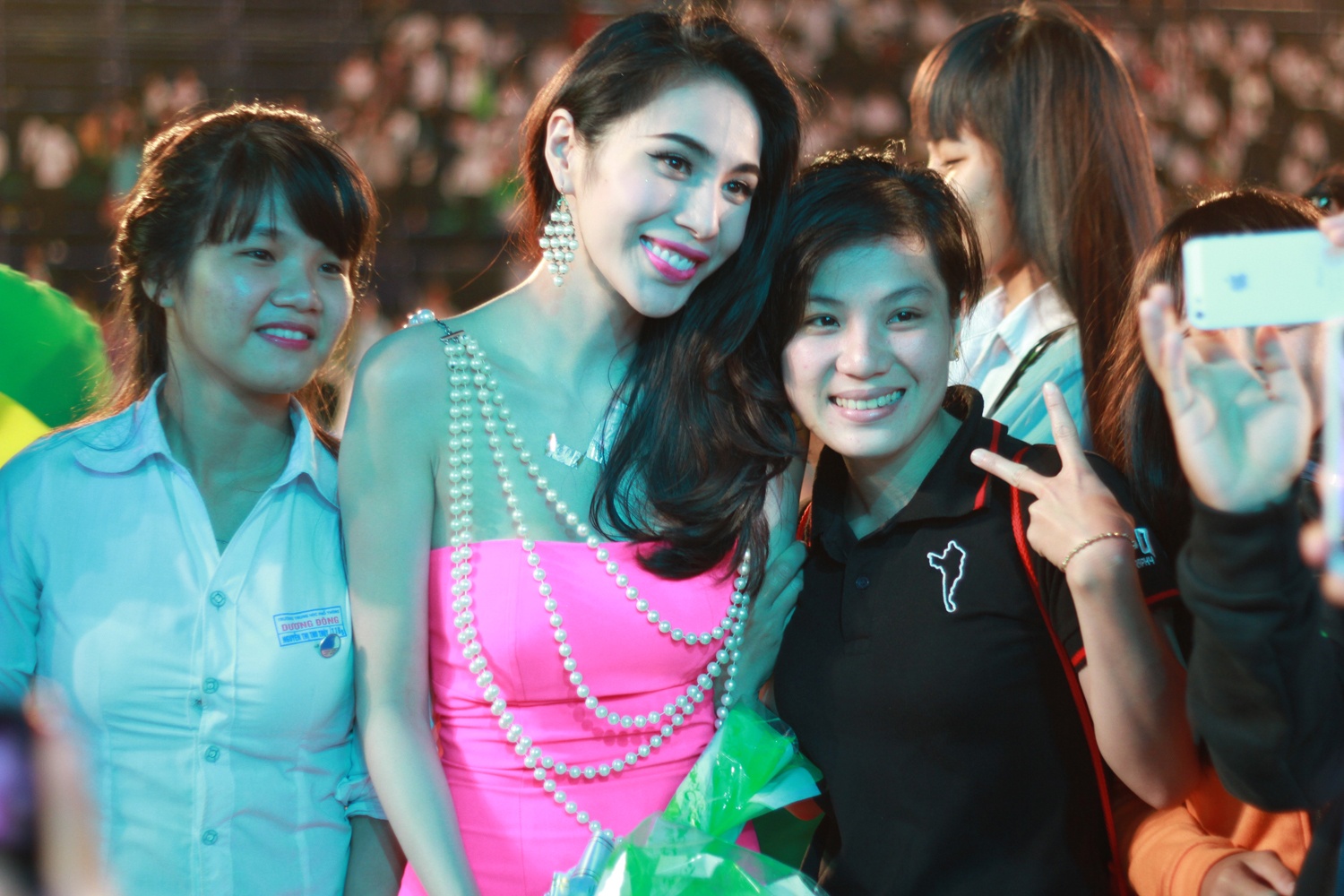 | Kết thúc chương trình, Thuỷ Tiên liên tục bị bao vây bởi những khán giả tại đây. |