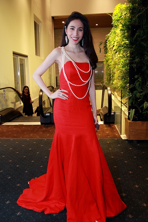 | Hình ảnh Thủy Tiên mới đây xuất hiện đầy thu hút trong một sự kiện với bộ đầm đỏ rực rỡ. |