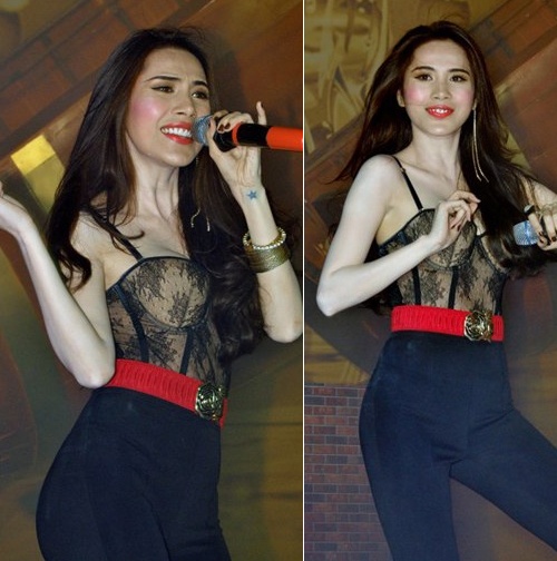 | Khó có thể nhìn thấy sự khác biệt ở khuyên tai hay kiểu đeo vòng ngọc của cô ca sĩ xinh đẹp. |