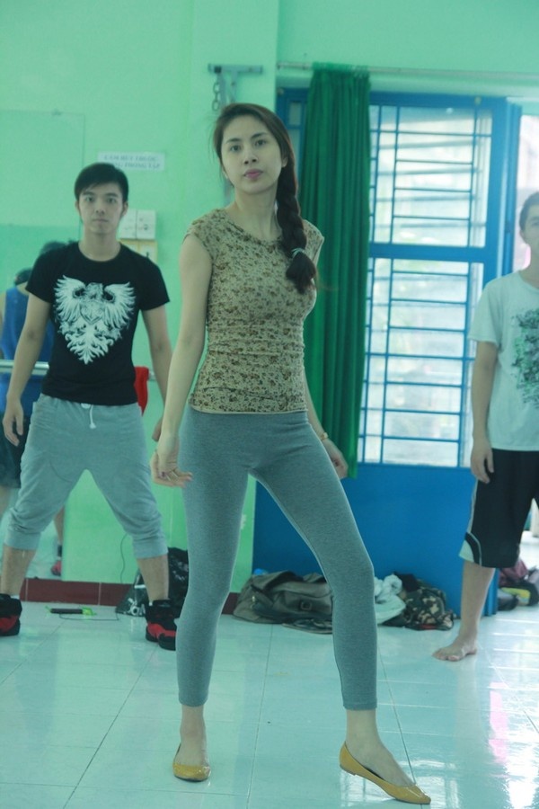Với trang phục tập luyện khá đơn giản, cô vẫn khoe được vóc dáng "chuẩn" của mình. Những động tác vũ đạo càng giúp nữ ca sĩ phô diễn đường cong bắt mắt. |