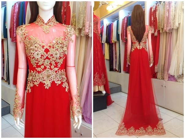 | Cận cảnh trước và sau áo dài cưới của Thủy Tiên. Ảnh: NVCC |