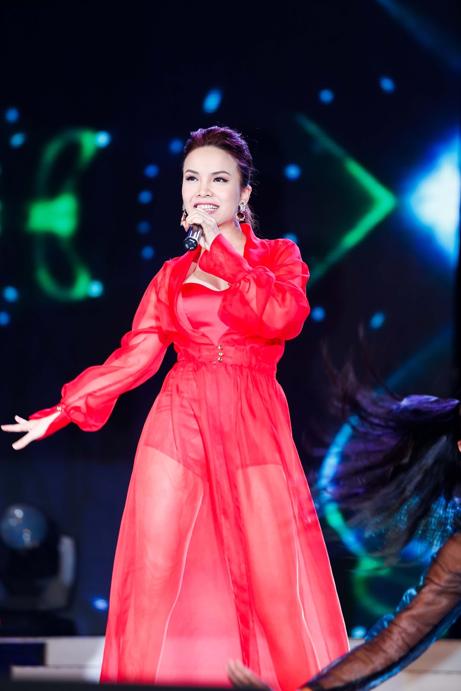 Hiền Thục thể hiện ca khúc sôi động Một ngày ta xa nhau. Bà mẹ một con diện trang phục màu tối, quần da bóng làm điểm nhất tạo hình ảnh mạnh mẽ, cá tính.