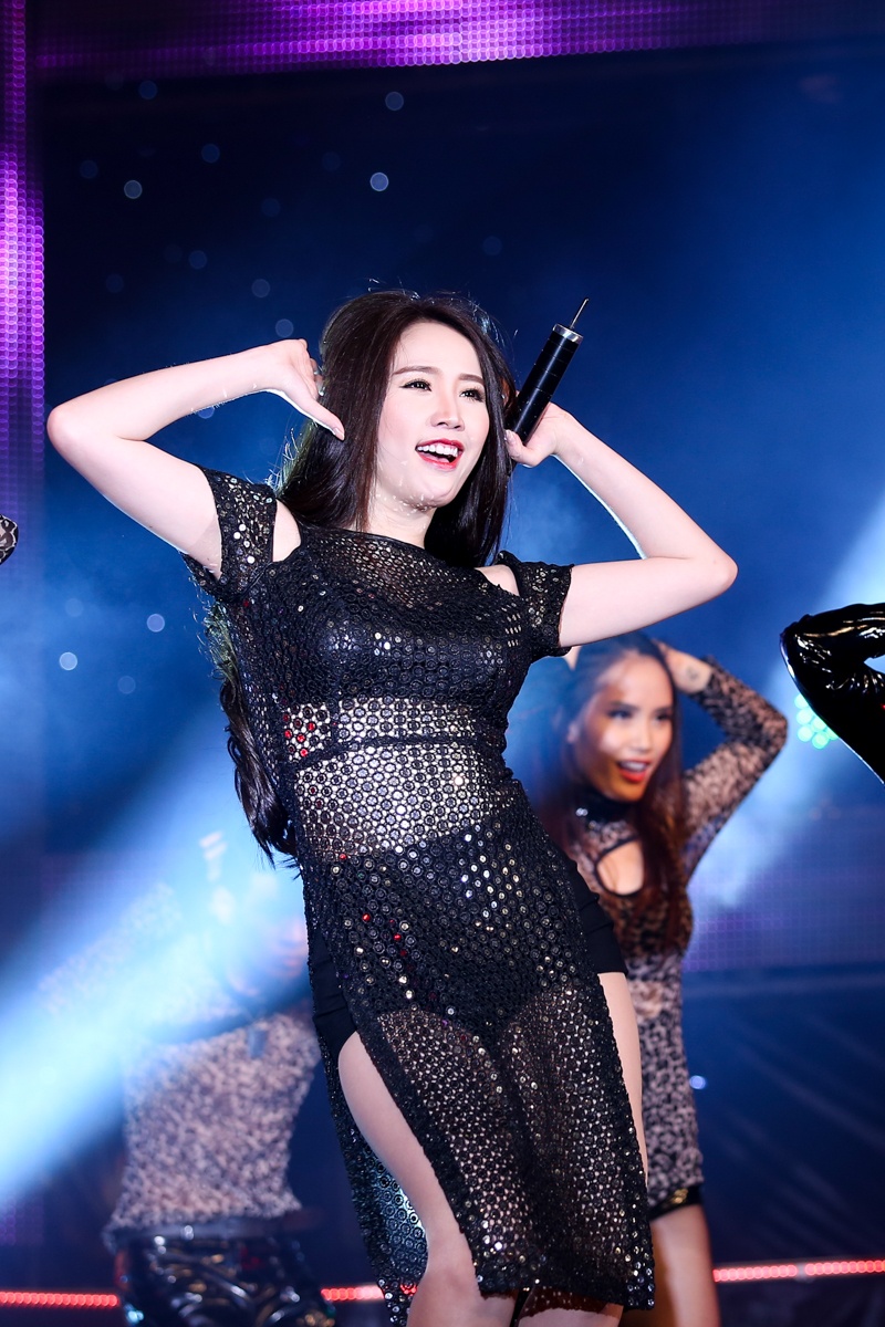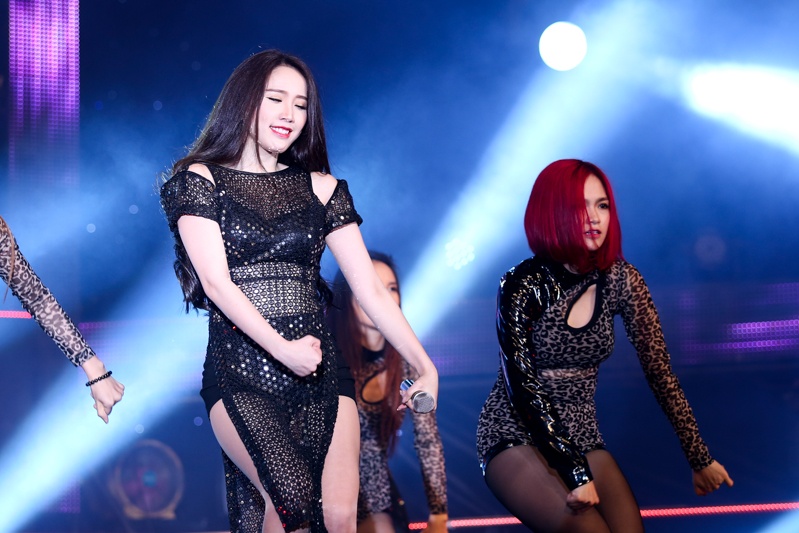 Nữ ca sĩ không quên thể hiện thế mạnh về vũ đạo với những bước nhảy gợi cảm và đủ sức “đốt nóng” sân khấu