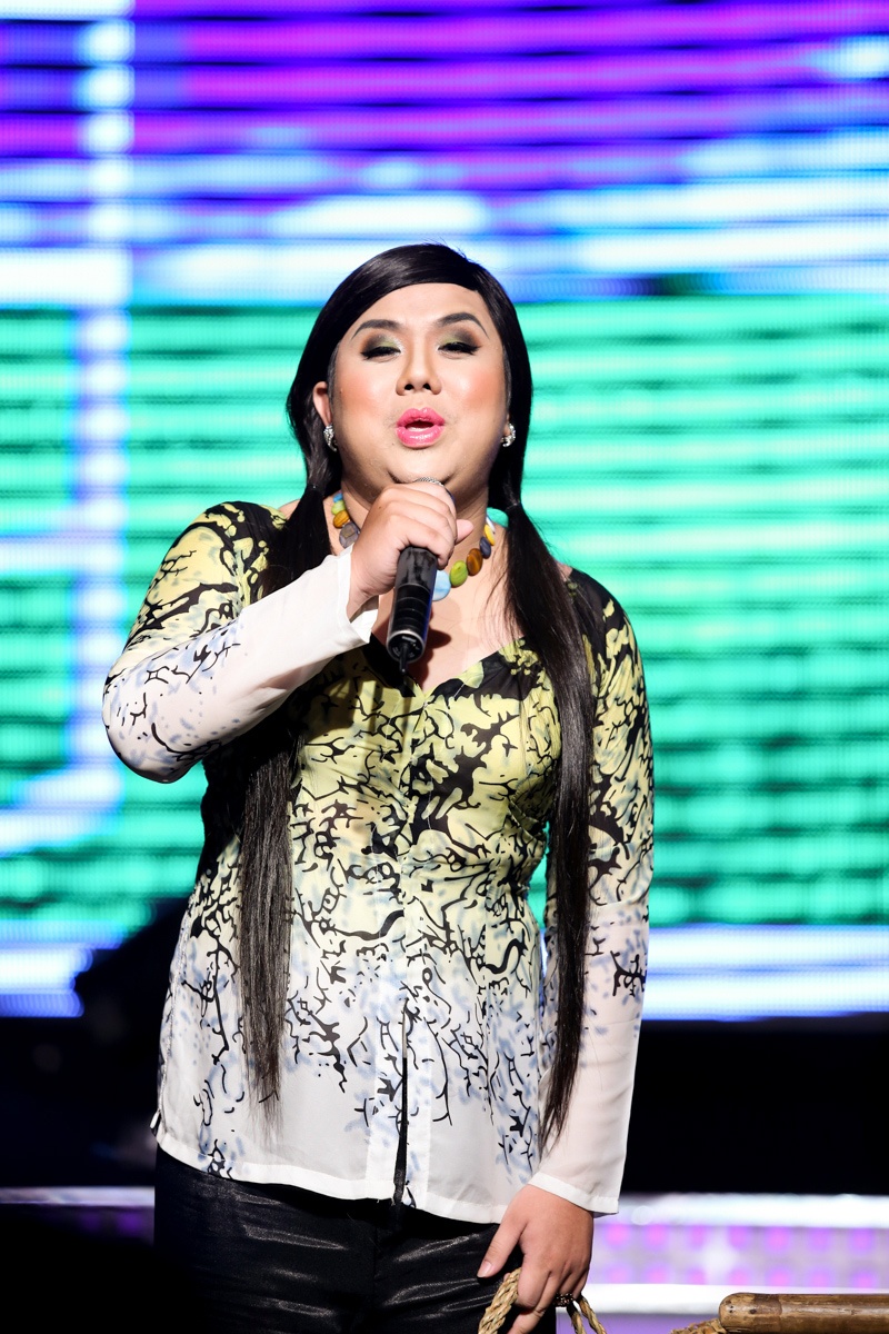 Danh hài Gia Bảo giả gái trên sân khấu.