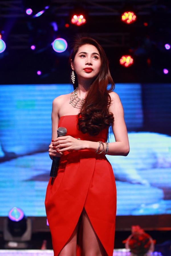 | Bà xã của Công Vinh diện lại chiếc đầm xẻ cao mà cô mới mặc trong chương trình trực tiếp mới đây. Cả hai thể hiện liên khúc Trái tim lầm lỡ, Kiss me. |