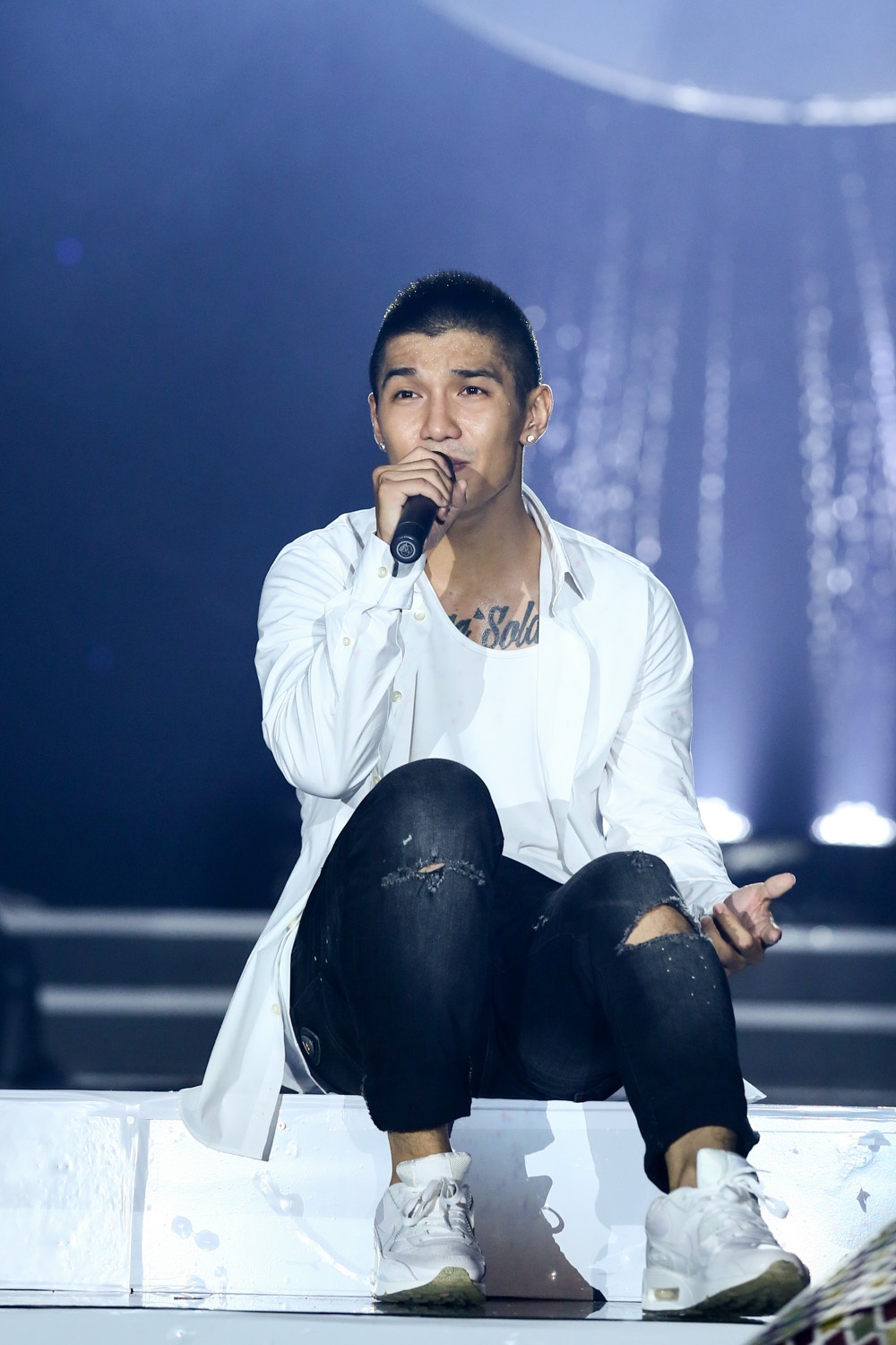Phát huy thế mạnh của mình, Cường Seven tạo được điểm nhấn riêng cho mình với màn vũ đạo đẹp mắt trong liên khúc nhạc dubstep Sunshine alone và Far away.