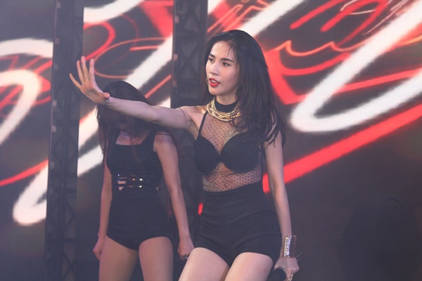 | Thủy Tiên ăn mặc rất sexy, cô từng cho biết thời trang sân khấu và thời trang đời thường rất khác nhau nên đừng lấy chuẩn mực gợi cảm ra để đánh giá, so sánh. |