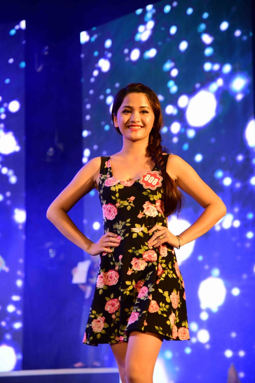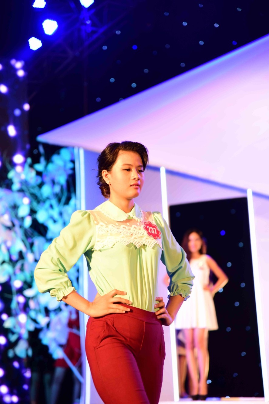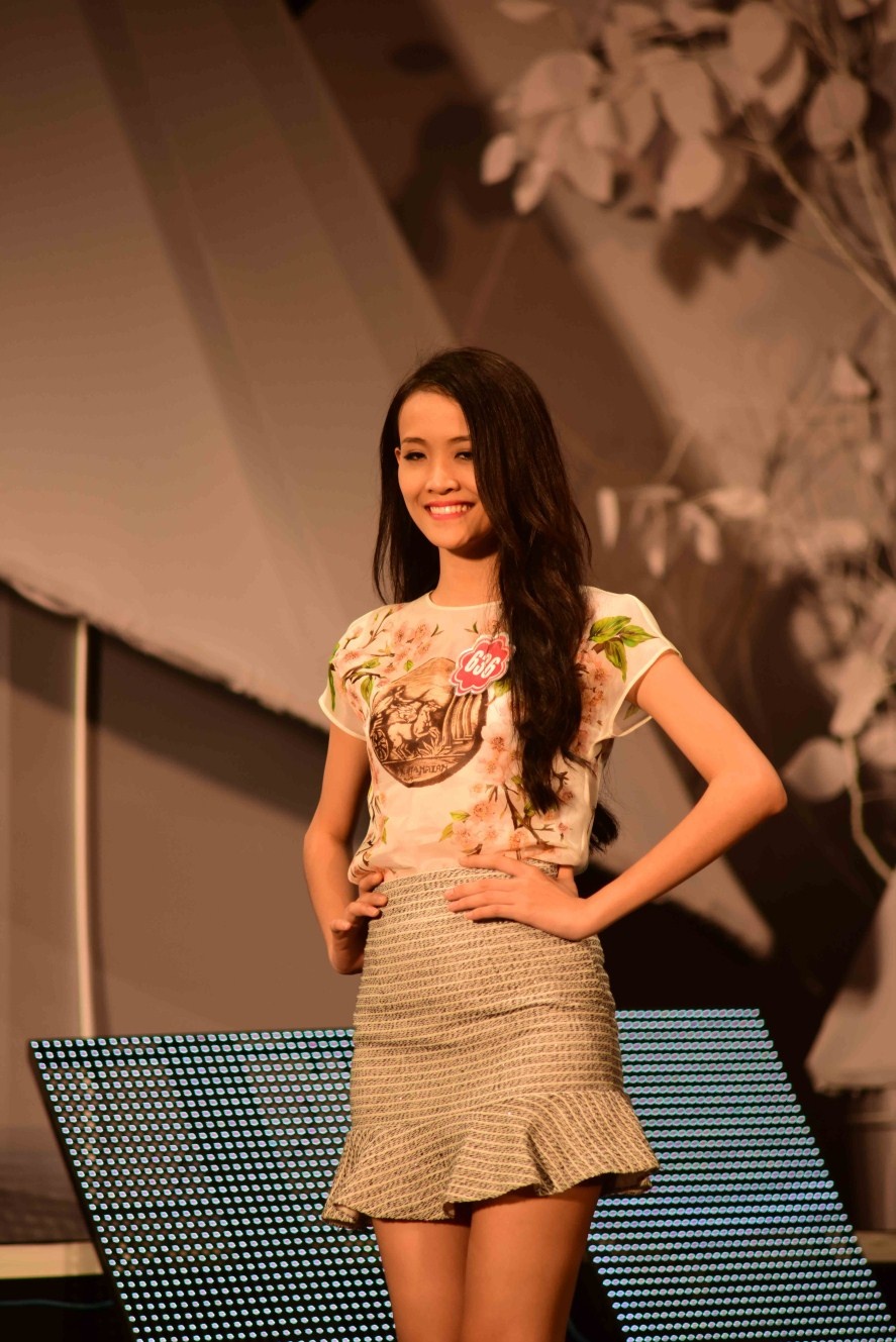 | Chân dài Trương Mỹ Nhân, một trong những thí sinh nổi bật khu vực miền Nam tự tin thể hiện sự chuyên nghiệp của mình. Nữ người mẫu ăn vận khá sành mốt. |