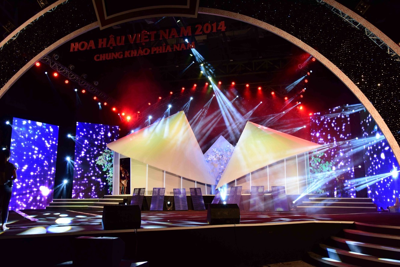 Đêm chung khảo cuộc thi Hoa hậu Việt Nam 2014 khu vực miền Nam diễn ra vào tối 9/11. Trước đó, 39 thí sinh cùng các nghệ sĩ Việt có buổi tập luyện ngay tại sân khấu có ý tưởng thiết kế từ nhà hát Cao Văn Lầu 3 nón lá, một trong những công trình kiến trúc đáng tự hào của tỉnh Bạc Liêu.