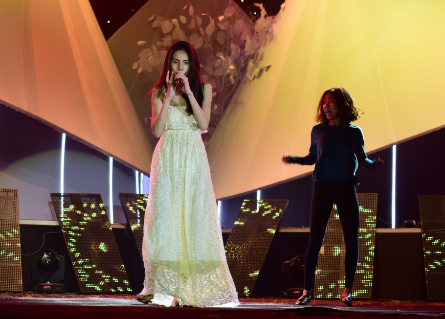 Ca sĩ Thủy Tiên có mặt từ hôm 8/11 để tham gia công tác luyện tập của ban tổ chức. Bà mẹ một con diện đầm ngủ ren đơn giản, cùng các vũ công thể hiện những ca khúc sở trường mà cô sẽ biểu diễn trong đêm chọn lựa 20 ứng cử viên hoa hậu bước vào chung kết.