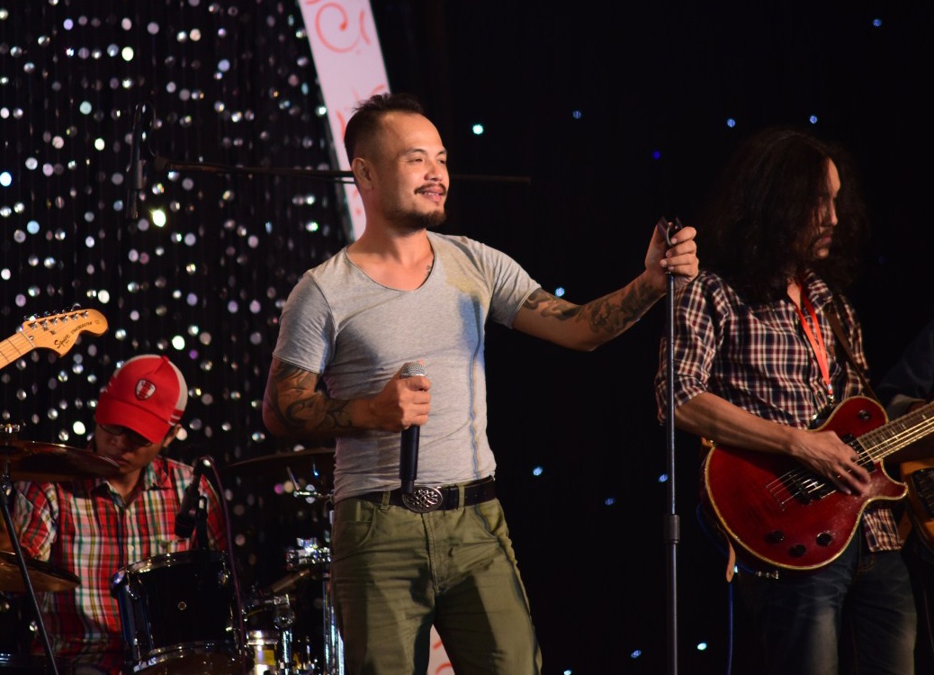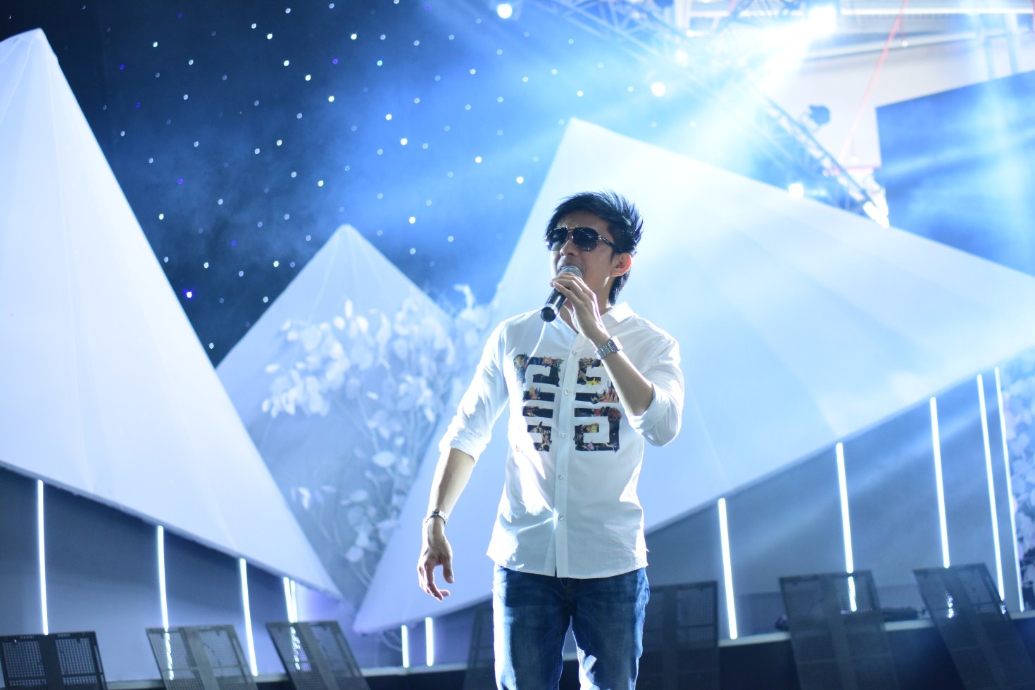 | Buổi diễn tập còn có sự góp mặt của Trần Lập. Anh mặc áo thun quần jeans đơn giản và khỏe khoắn. |