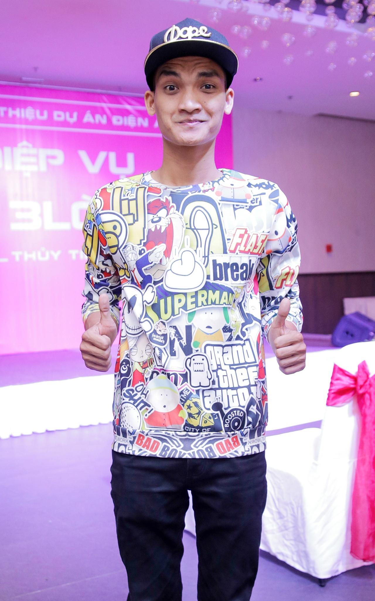 | Thuỷ Tiên chụp ảnh cùng dàn diễn viên của Điệp vụ 3 Lờ. Trong buổi ra mắt, giọng ca Kiss Me hé lộ, trước đó, Thành Lộc không có ý định tham gia phim, nhưng với sự "đeo bám" kiên trì của nhà sản xuất, anh đã nhận lời. Nhất là khi xem kịch bản và trò chuyện cùng Thuỷ Tiên, danh hài thay đổi ý định và hứa hẹn sẽ hết mình với vai diễn. |