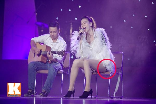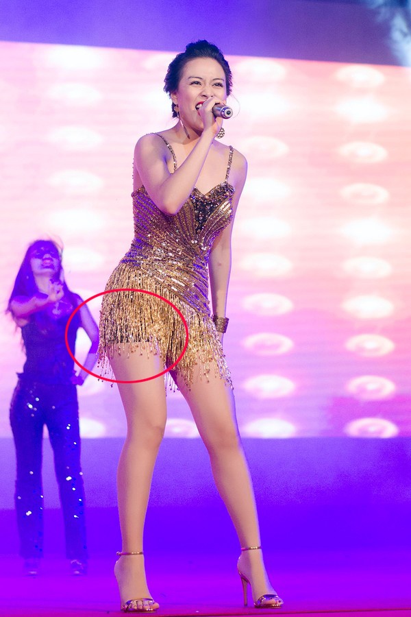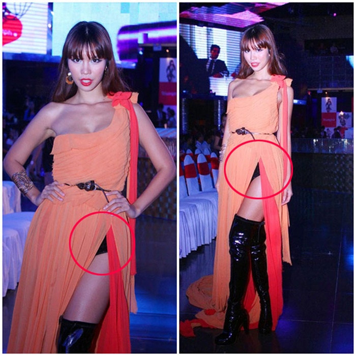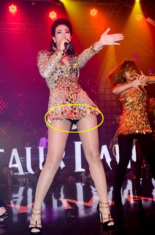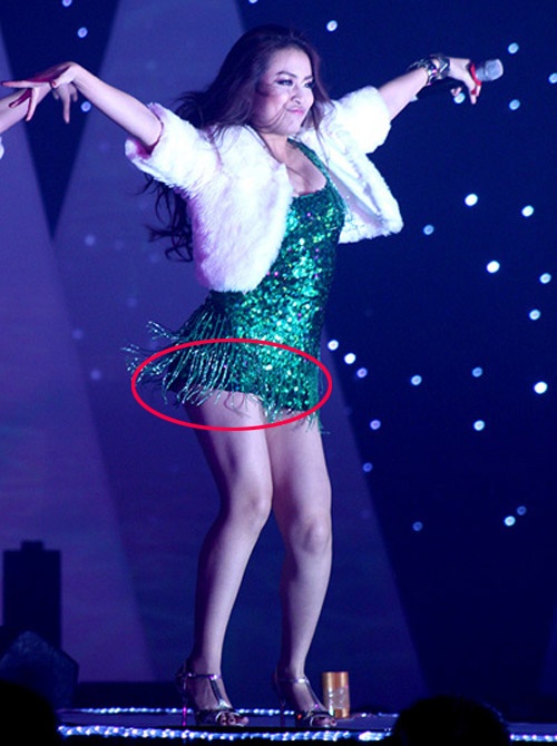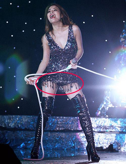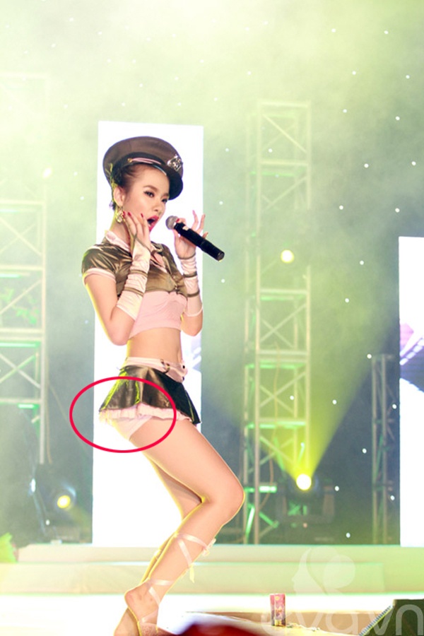 | Chân dài Hà Anh từng bị lộ quần lót khi lên sân khấu biểu diễn, không lâu sau đó người đẹp chọn phương án an toàn để vẫn sexy mà không gặp tai tiếng. |