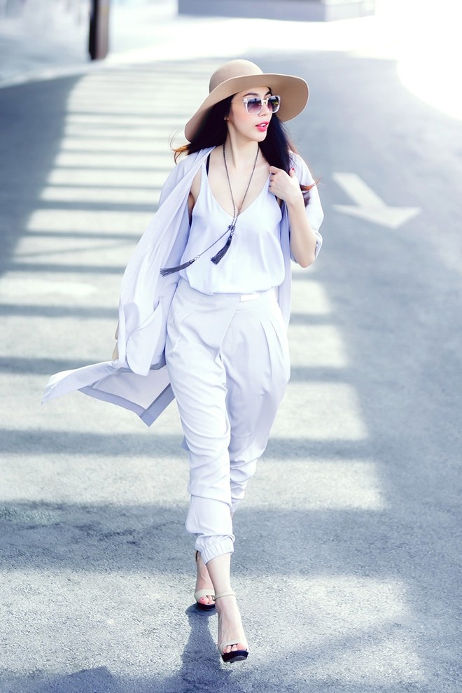| Trào lưu "cây trắng" thanh lịch được á hậu Huyền My diện xuống phố tuần qua. Người đẹp 9X được khen ngợi là chững chạc và tinh tế hơn nhờ gam màu trung tính. |