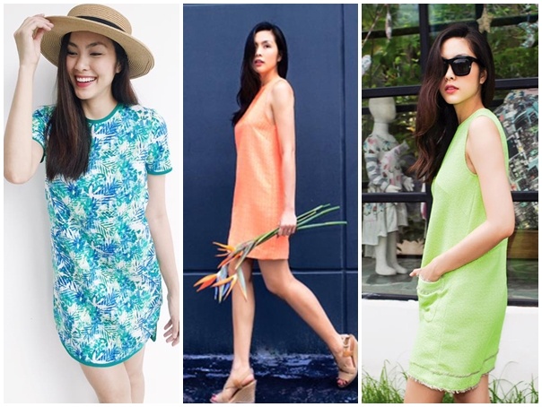 | Khác biệt với hình tượng cuốn hút của đồng nghiệp, Tăng Thanh Hà trung thành gu thời trang kín đáo, lịch thiệp. Tuần qua, người đẹp làng phim Việt lăng-xê mốt váy suông thoải mái, sắc màu bắt mắt mang đến sự tươi trẻ. |