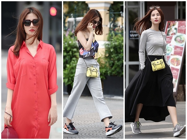 | Trong khi đó, khi dạo phố ngày cuối tuần, Diễm My 9X làm mới hình tượng với gu phóng khoáng, mix - match ngẫu hứng. |