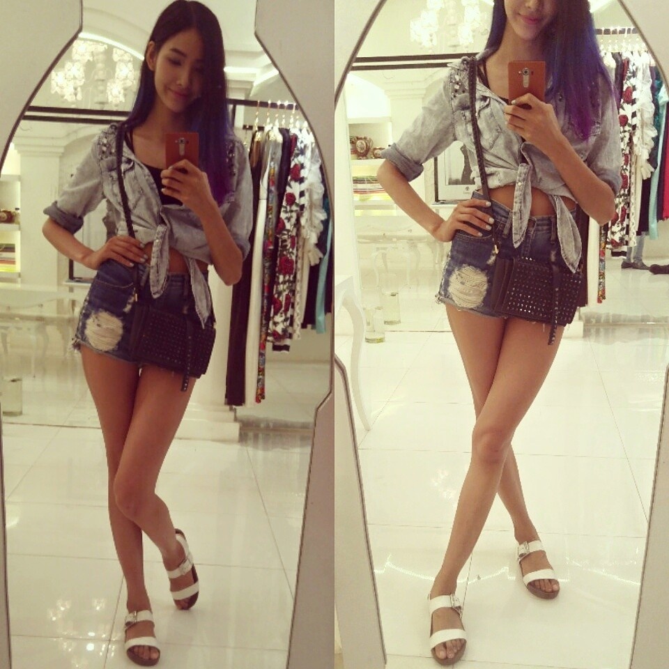 | Trên trang cá nhân, Hoàng Thùy khoe thân hình chuẩn với đôi chân dài và vòng eo 58 đáng mơ ước. "Cây denim" giúp cô trông cá tinh và khỏe khoắn. |