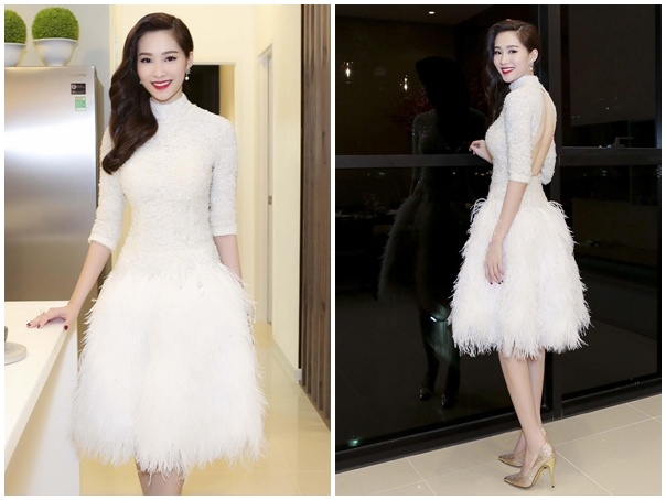 | Dự sự kiện ra mắt dự án bất động sản, hoa hậu Đặng Thu Thảo chọn đầm trắng thanh lịch và nhã nhặn. Thiết kế được đính kết tinh xảo ở thân trên, lông vũ thanh thoát ở chân váy tôn hình ảnh sang trọng. Người đẹp gốc Bạc Liêu trang điểm thu hút và tóc suông nhẹ nhàng. Ảnh: Khoa Nguyễn |