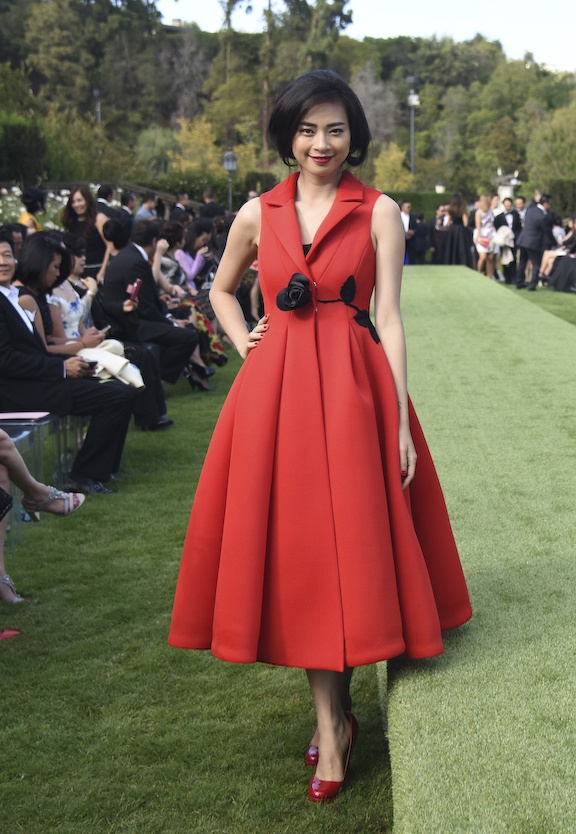 | Góp mặt tại show xuân hè của Đỗ Mạnh Cường, Ngô Thanh Vân nổi bật trong bộ đầm đỏ do chính chủ nhân buổi diễn thiết kế. Bộ cánh tôn nước da trắng, dáng vẻ yêu kiều của "đả nữ" điện ảnh Việt, đồng thời đưa cô vào danh sách sao mặc đẹp tuần qua. |