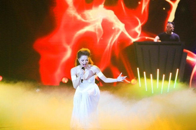| Sau một tuần đầy sóng gió với scandal, Thủy Top vẫn trình diễn hết mình trong đêm bán kết. Với chủ đề Musical & Remix, cô hàng hot girl đình đám Hà thành một thuở vẫn tự tin trau chuốt cho cả hai phần thi với phong thái đầy bản lĩnh. Mở đầu màn trình diễn với I am a good girl ở phần Musical, Thủy Top tiếp tục cho khán giá mãn nhãn với phần vũ đạo đẹp mắt. (Ảnh chụp bởi Mobiistar Prime X) |