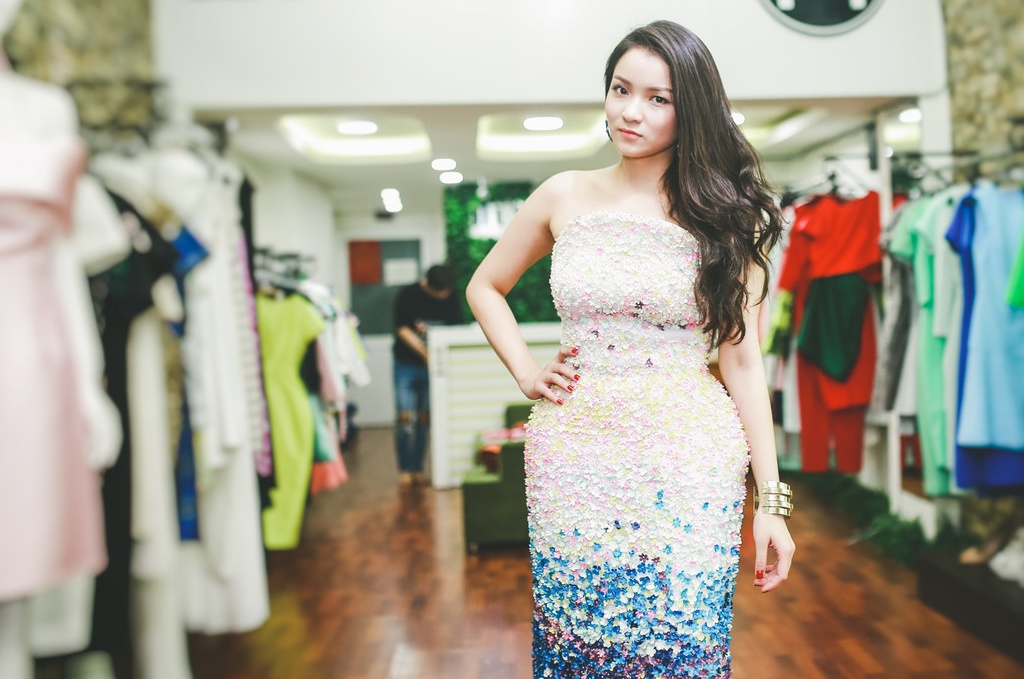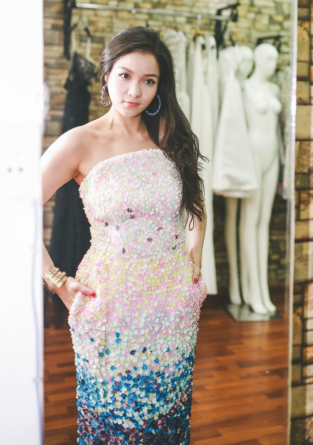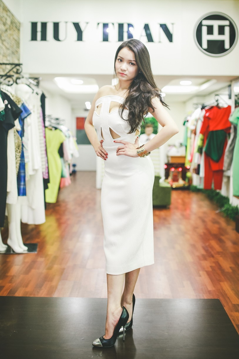 Để chuẩn bị cho sự xuất hiện hoàn hảo tại Tuần lễ thời trang quốc tế Việt Nam, hot girl đã trực tiếp đến showroom NTK Huy Trần chọn lựa trang phục phù hợp vóc dáng.