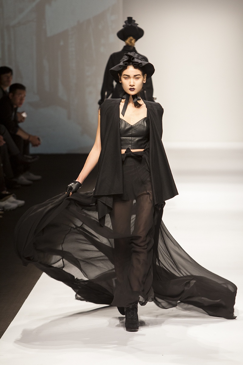 Người mẫu bước ra từ Vietnam's Next Top Model là chân dài châu Á duy nhất trong show diễn thu đông "Sherlock Holmes" của nhà thiết kế người Việt.