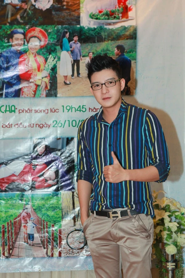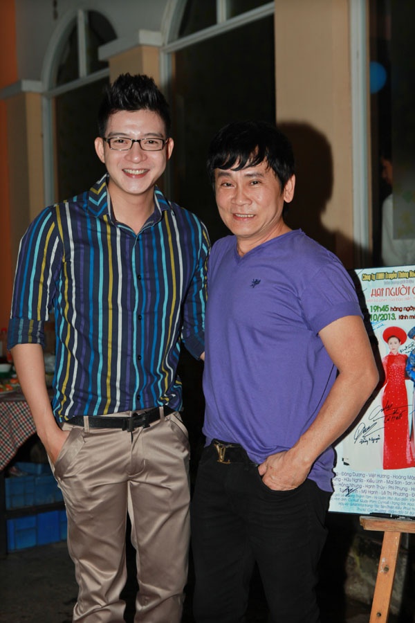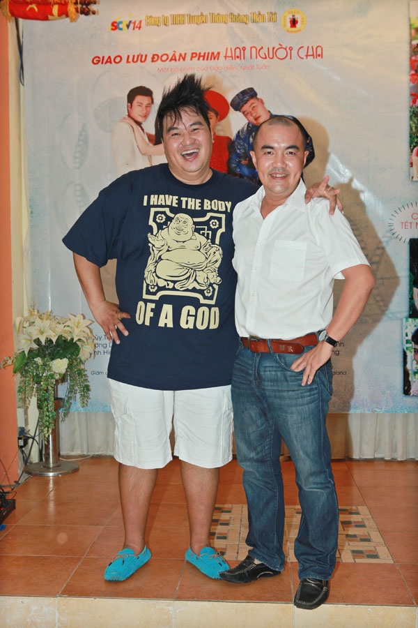 Nghệ sĩ hài Quốc Thuận đến chúc mừng đàn anh. Hai người cha là bộ phim thứ 2 của Hoàng Mập trong vai trò sản xuất lên sóng truyền hình sau Chàng mập nghĩa tình. Phim này dành nhiều đất diễn để Việt Hương - người bạn thân nhất của anh thoải mái "tung tẩy" với vai tưng tửng, đỏng đảnh và cũng rất đỏm dáng. |