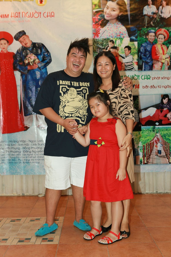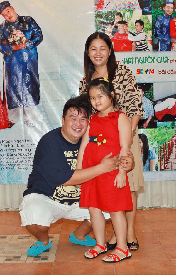 Con gái út của anh có nhiều nét giống bố. Trong nhiều tháng ròng rã cùng đoàn phim, vợ Hoàng Mập luôn tức trực bên chồng lo việc ăn uống cho cả đoàn. |