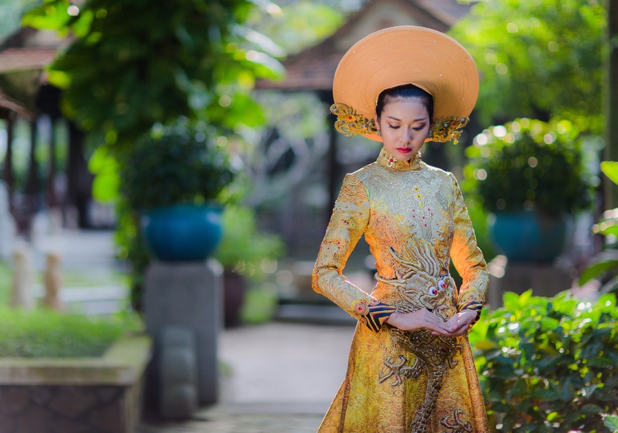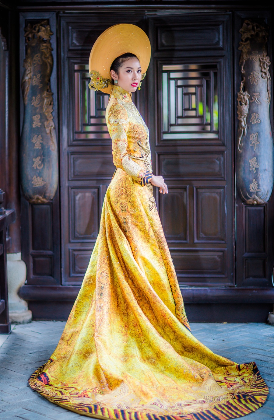 | Bộ trang phục lấy cảm hứng từ ý nghĩa nhân văn và khắc sâu văn hóa truyền thống, thể hiện tình đoàn kết hữu nghị. Áo dài đại diện cho văn hóa truyền thống của Việt Nam lấy màu chủ đạo là vàng đồng. Để tránh sự đơn điệu, tông màu chính sẽ được thể hiện với nhiều sắc độ đậm nhạt. |