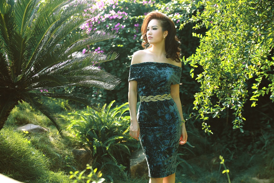 | Sở hữu gương mặt nữ tính, thân hình cân đối, Thụy Vân dễ dàng phù hợp trong những bộ váy ôm dáng, tông màu trơn giản. Thiết kế trễ vai trong ảnh gợi đường cong gợi cảm của người mặc. |
