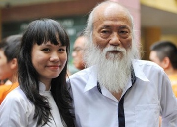 Nhân vật gây chú ý trong lễ khai giảng của trường THPT Lương Thế Vinh, Hà Nội là học trò "tí hon" Lê Quốc Vinh. Em không thể đi nhanh, được bạn bè cõng vào trường.