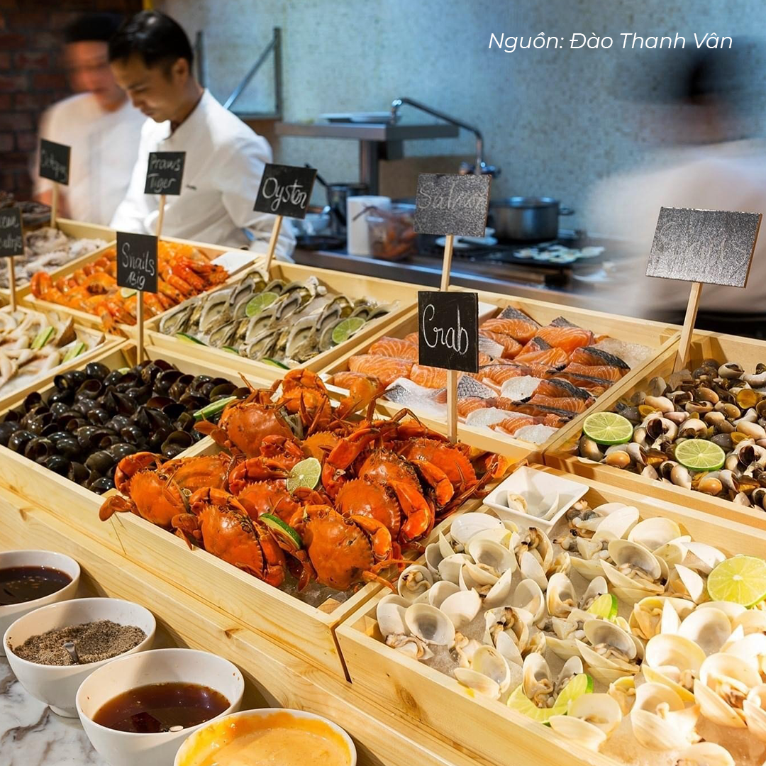 Tôi từng ghé địa chỉ này để thưởng thức buffet hải sản. Theo đánh giá cá nhân, số lượng hải sản chưa đa dạng so với những nhà hàng cùng phân khúc, chủ yếu có tôm hùm, sò điệp Nhật, hàu, cua, tôm càng, bạch tuộc, vẹm xanh... Song cách chế biến hợp khẩu vị khiến tôi ấn tượng.