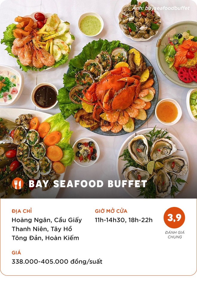 Nếu là tín đồ hải sản và muốn tìm một quán buffet cho dịp tụ họp cùng bạn bè ở Hà Nội, thực khách có thể tham khảo các địa chỉ dưới đây.